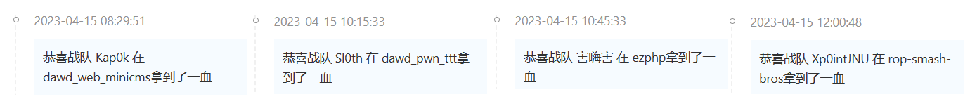这次奇安信整了一个dawd,纯纯抄作业比赛,上一轮流量直接拿来用。一共2pwn2web,其中一道pwn在比赛结束前1个半小时由逆向手拿了一血…